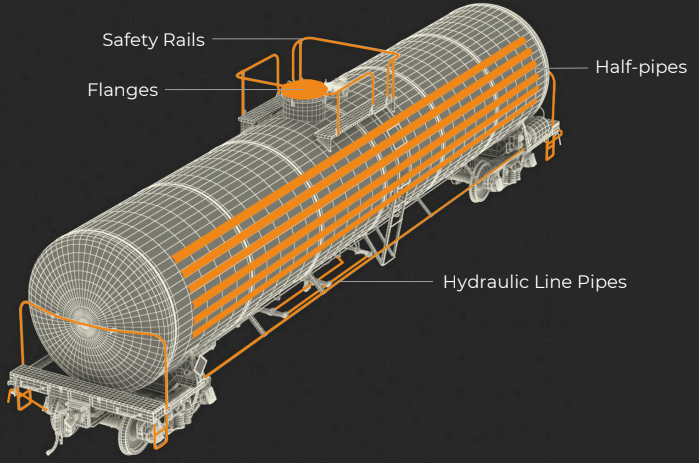 Half-pipes (Polotrubky): Ohýbané velkoformátové plechy pro pláště cisteren.
